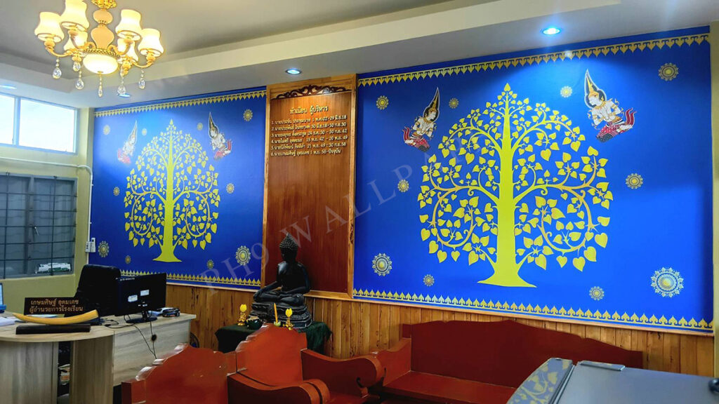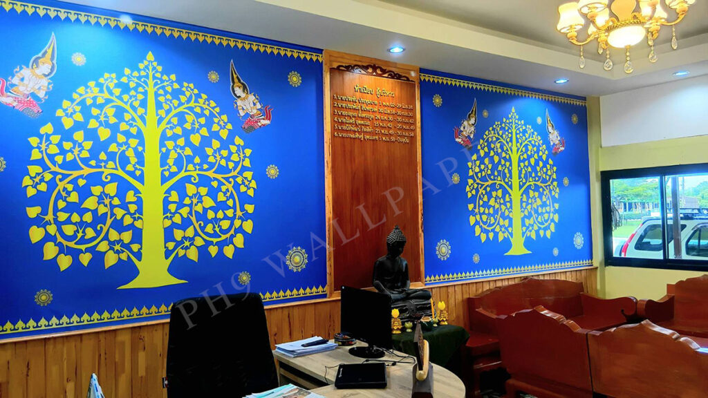 [ผลงาน] วอลเปเปอร์ภาพต้นโพธิ์ทอง-พื้นน้ำเงิน ตกแต่งห้องทำงาน, ห้องรับรอง
