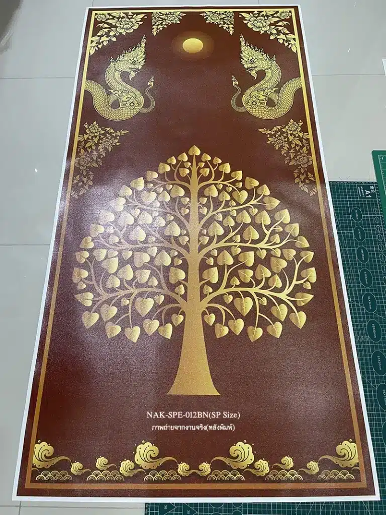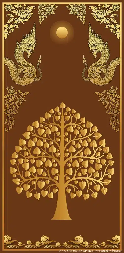 [ผลงาน] ออกแบบผลิต วอลเปเปอร์ภาพต้นโพธิ์ทอง-พญานาค สีทองน้ำตาล