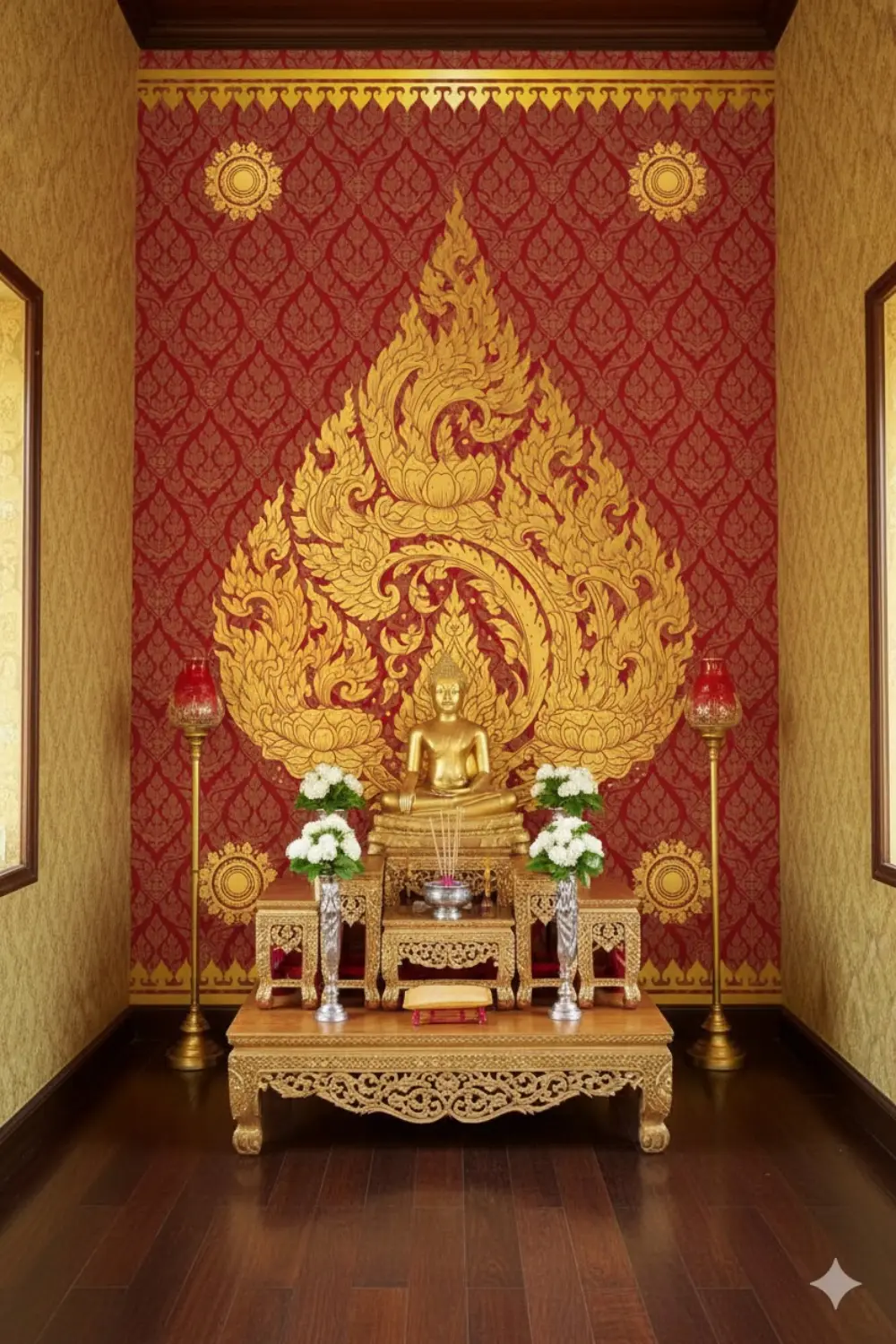 สติ๊กเกอร์/วอลเปเปอร์(ผ้าแคนวาส) ลายไทยพรีเมียมสำหรับตกแต่ง “ห้องพระ–วัด–ร้านนวดสปาไทย–ร้านอาหารไทย” ดีไซน์คมชัด มีสีแดง/น้ำเงิน/เขียว และดำให้เลือก เลือกพิมพ์ได้ทั้งสติ๊กเกอร์พีวีซี กันน้ำ หรือผ้าแคนวาส เช็ดทำความสะอาดได้ ติดง่าย เหมาะกับพื้นผิวเรียบ ช่วยเสริมบรรยากาศความเป็นไทย สงบงามและมีมงคล ทั้งงานบ้านและงานเชิงพาณิชย์
