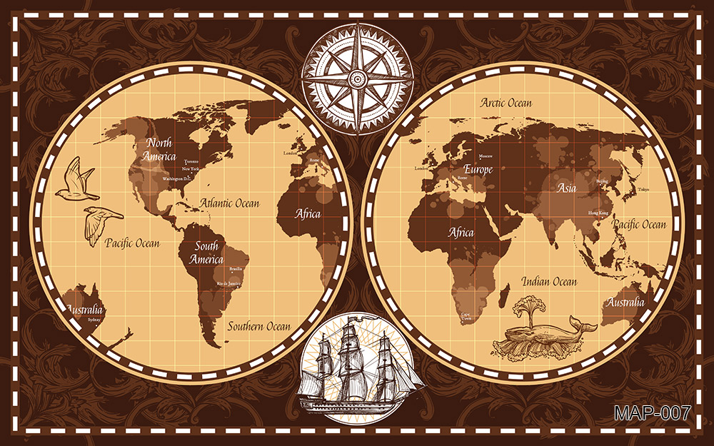 วอลเปเปอร์ติดผนัง/สติ๊กเกอร์ ภาพแผนที่โลก MAP-007